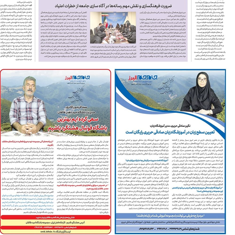 مصاحبه افتخاری روزنامه جام جم با مدیریت آموزشگاه صادقی حریری